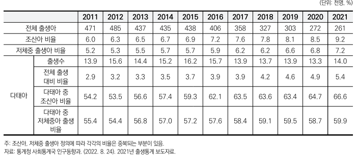 우리나라의 미숙아 관련 출산 통계 동향